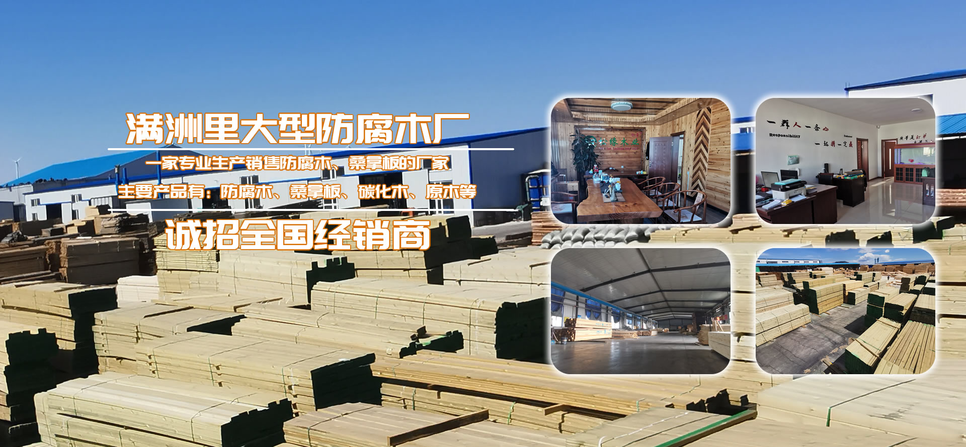 滿洲里松緣木業(yè)有限公司是一家專業(yè)從事戶外防腐木深加工企業(yè)。工廠總占地面積2.4萬平方米,其中廠房占地面積4000平,水泥硬化地面積2萬平方米,防腐木年生產(chǎn)量80000立方米,桑拿板年生產(chǎn)量310000平方米。公司長年貯備充足、刨光材、板材成品防腐木以及各種進口防腐木材。從俄羅斯選材調(diào)運,保證有充足的優(yōu)質(zhì)木材。精選生產(chǎn)加工的樟子松嚴格按照美國AWPA防腐等級標準,經(jīng)過真空加壓浸等15道專業(yè)的木材防腐生產(chǎn)工藝流程制造,使木材具有防腐、防蟲、防霉等功效,已廣泛用于古建筑、木亭、別墅、住宅區(qū)、公園廣場等公共場所。壽命持久50以上。產(chǎn)品售前售后的服務(wù),力求出廠的每件產(chǎn)品都是精品、藝術(shù)品,并在全國設(shè)立三十多個市級經(jīng)銷商。
